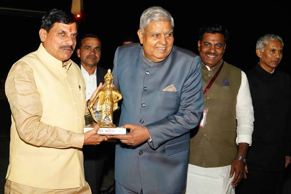 Governor Shri Patel and Chief Minister Dr. Yadav bid farewell to Vice President Shri Dhankhar