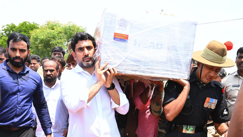 Accompanied by ministers Anagani Satya Prasad, Vangalapudi Anitha, and Savitha, MP B.K. Parthasarathi, former ministers Palle Raghunatha Reddy and Kalava Srinivasulu, MLAs Palle Sindhura Reddy and M.S. Raju, and senior TDP leader J.C. Prabhakar Reddy, Lokesh offered floral tributes to the fallen soldier. The government will conduct Muralinaik’s final rites with full official honours.
