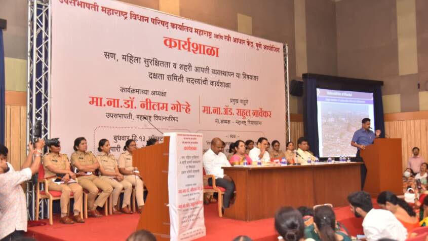 Mumbai, Aug 2025: Under the initiative of Legislative Council Deputy Chairperson Dr. Neelam Gorhe, a special workshop on “Women’s Safety, Law and Order during the Festive Season, and Disaster Management in the City” was organized in Mumbai. Speaker of the Legislative Assembly Adv. Rahul Narwekar attended the workshop as the chief guest. Mumbai Police, the Disaster Management Department of the Brihanmumbai Municipal Corporation, and Women’s Vigilance Committees participated actively in the event.