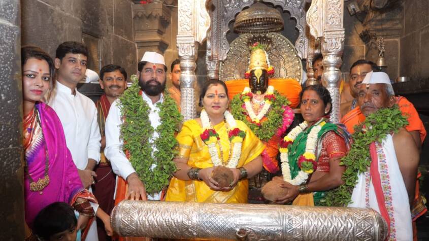 Also present were Guardian Minister Jaykumar Gore, Horticulture Minister Bharat Gogavale, MP Shrikant Shinde, MLAs Samadhan Avatade, Abhijit Patil, Tanaji Sawant, Bapusaheb Pathare, District Collector Kumar Aashirwad, CEO Kuldeep Jangam, SP Atul Kulkarni, Temple Committee Vice-Chairman Gahininath Maharaj Ousekar, committee members, Executive Officer Rajendra Shelke, and other dignitaries.