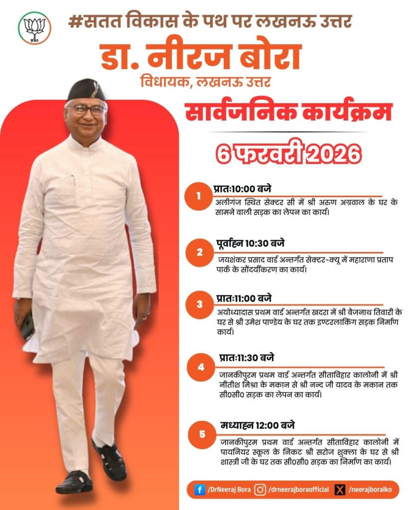 Reiterating his commitment to the holistic development of the Lucknow North constituency, Dr. Bora stated that improving road infrastructure, drainage systems, and public facilities remains a top priority. “Our aim is to ensure that residents receive better civic amenities and a safer, more convenient living environment,” he said.