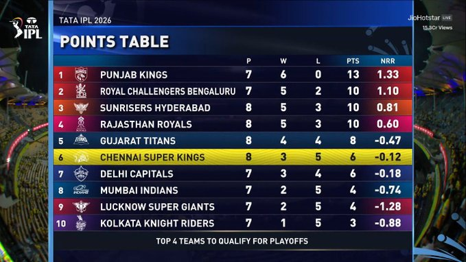 The duo stitched together a match-defining partnership, with Sudharsan particularly aggressive against Akeal Hosein, dispatching him for multiple sixes. Chennai’s fielding lapses further compounded their problems, as Gujarat capitalised fully on the chances offered.