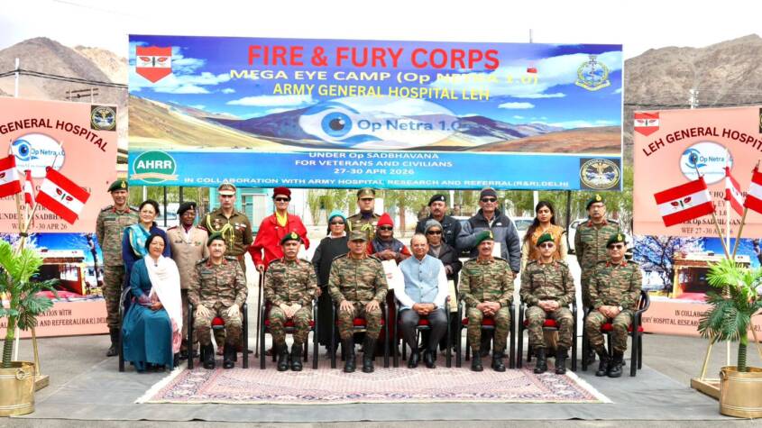 In a landmark achievement in high-altitude medical care and humanitarian outreach, the Indian Army successfully conducted a four-day Advanced Surgical Eye Camp, ‘Op Netra 1.0,’ at 153 General Hospital, Leh from April 27-30, 2026. The camp was inaugurated by GOC 14 Corps, Lt Gen Hitesh Bhalla.