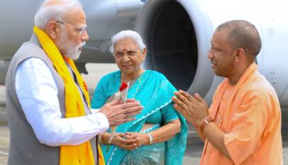 Governor Anandiben Patel and CM Yogi welcome PM Modi in Kashi
