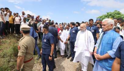 Amit Shah visits Jammu and inspects the rain, flood, and landslide-affected areas of the Jammu division.
