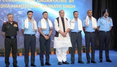 Raksha Mantri felicitates Gaganyatris – Gp Capt Shubhanshu Shukla, Gp Capt PB Nair, Gp Capt Ajit Krishnan & Gp Capt Angad Pratap – in New Delhi