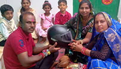 Two Sisters Give Brother a Unique Gift of Safety: Tied Rakhi and Placed a Helmet