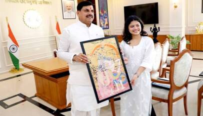 CM Dr. Yadav Receives Ram-Sita Swayamvar Painting Inspired by Indonesian Ramayana from Gaurangi