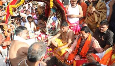 Lord Shri Chandramouleshwar Seated in a Palaki and Shri Manmahesh On An Elephant Set Out On a City Procession in Ujjain To Bless Devotees