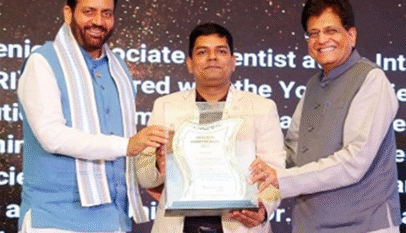 Chief Minister Nayab Singh Saini receives Award from Union Minister Piyush Goyal at the 16th Agriculture Leadership Conclave 2025