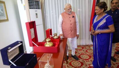 Prime Minister presents replica of Ram Mandir and Holy Water to Trinidad & Tobago Prime Minister
