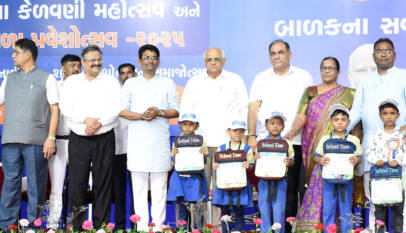 Shala Praveshotsav 2025 – Day 02: Chief Minister Welcomes 197 Children with Educational Kits at Pundrasan Primary School