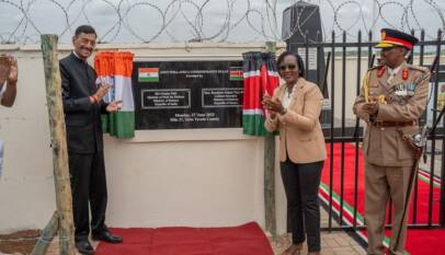 Raksha Rajya Mantri Sanjay Seth and his Kenyan counterpart unveil the joint India-Africa Commemorative Pillar