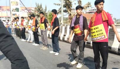 Tripura Indigenous Student Federation Protests Demanding Roman Script For Kokborok Language.