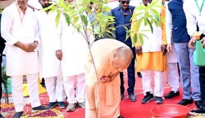 CM Yogi plants Rudraksha sapling on Dr. Syama Prasad Mookerjee’s ‘Balidan Diwas.