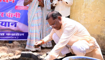 CM Vishnu Deo Sai Lays Bricks for a Soak Pit as a Mason; Applauds the Work of the Water Conservation Brigade to Save Water