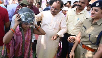 Chief Minister Vishnu Deo Sai Personally Gifts Helmets to Two Youths During Chaupal