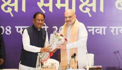 Amit Shah chairs a security review meeting on Left Wing Extremism in Raipur, Chhattisgarh