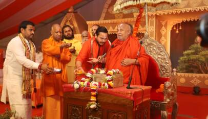 CM Yogi Adityanath meets Jagadguru Ramanandacharya Swami Ram Bhadracharya
