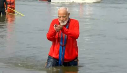 PM Modi takes holy dip at Triveni Sangam amidst Vedic chants, emphasizing unity