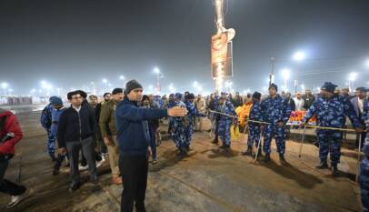 SDRF, NDRF, and Flood company personnel conduct continuous patrols at Sangam and bathing ghats
