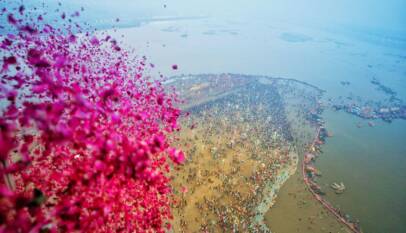 On the occasion of Basant Panchami, the Yogi government showers flowers from helicopters on all the ghats and akharas