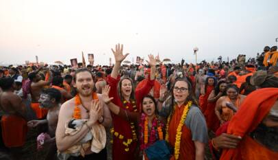 Foreign devotees immerse themselves in Indian culture during Basant Panchami Amrit Snan
