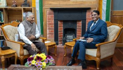 Mizoram Chief Secretary Pu Khilli Ram Meena and Director General of Police Pu Anil Shukla pay a courtesy visit to Governor Gen (Dr) VK Singh at Raj Bhavan in Aizawl