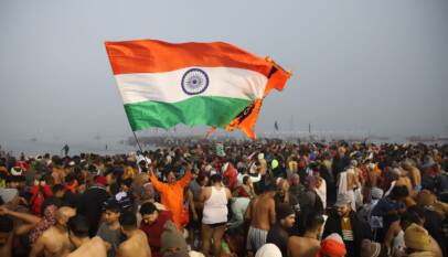 Jharkhand group waves tricolour and chants patriotic slogans at Sangam
