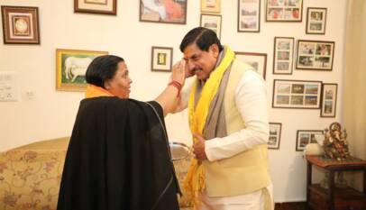 Former Chief Minister Sushri Uma Bharti felicitates Chief Minister Dr. Yadav