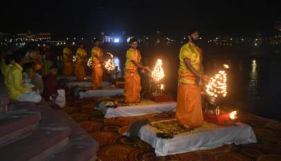 Chambal Maha Aarti on the First Day of Kota Festival, Divine Ghats and Glimmering Sky