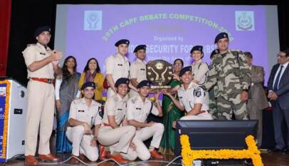 CISF lifts the running trophy as the best team in the 29th Annual NHRC debate competition for Central Armed Police Forces (CAPFs)