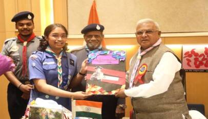Governor Shri Patel Wears Badge and Scarf of Bharat Scouts and Guides