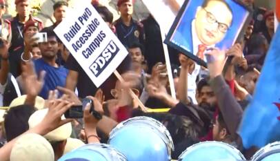 JNUSU Condemns Police Personnel Breaking Dr Ambedkar’s Portrait Inside Campus.