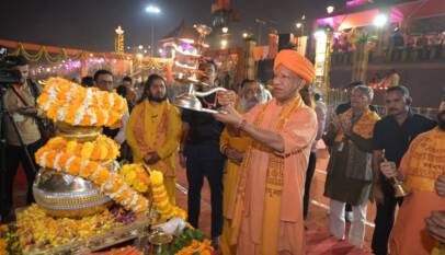 CM Yogi performs aarti and symbolic coronation of Lord Shri Ram, seeking divine blessings