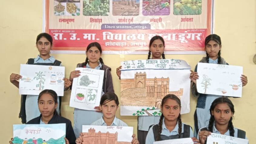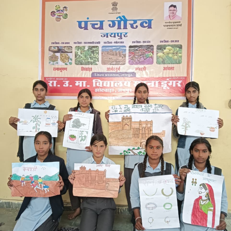 Chief Planning Officer Dr. Sudip Kumawat said that students creatively depicted Jaipur’s Panch Gaurav through their artwork. These included Kabaddi under the “One District–One Sport” initiative, Amla as the “One District–One Produce,” Lisoda as the “One District–One Plant Species,” Jewellery as the “One District–One Product,” and Amer Fort as the “One District–One Tourist Destination.” The paintings were presented in a highly creative, attractive, and emotionally expressive manner.