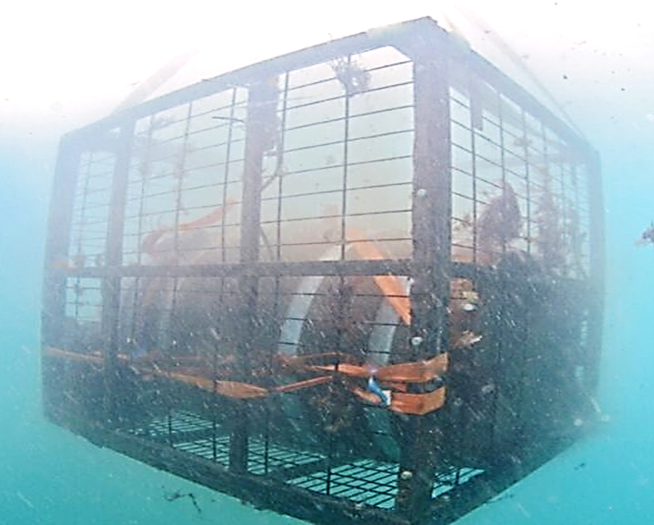 January 2026: In metal cages installed on the sea floor around the small island of Locos in northern Chile, divers stock bottles of wine as part of a new underwater storage program.