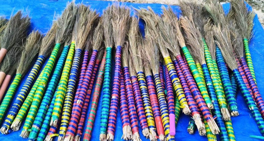 Earlier, due to the lack of employment opportunities, these women were confined to household work or were compelled to engage in temporary wage labour to support their families. After the formation of the self-help group, the women were entrusted with the task of manufacturing flower brooms. Under the scheme, financial assistance was provided for the purchase of raw materials required for broom making, enabling the women to procure materials independently and carry out production on a regular basis.