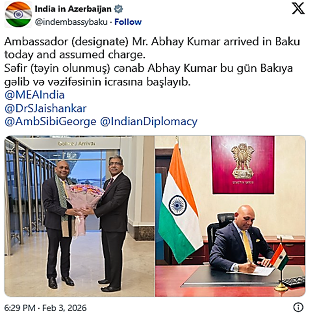 Yesterday – 03rd February, Kumar assumed charges immediately upon reaching Baku, the Indian Embassy said in a post on X.
