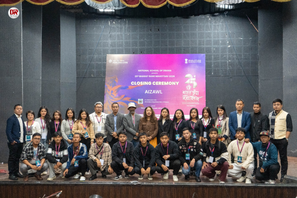 Aizawl, February 2026 : Today at 11:00 AM, the 25th Bharat Rang Mahotsav 2026 was held at Vanapa Hall, Aizawl, organized jointly by the National School of Drama (NSD), New Delhi and the Art & Culture Department, Government of Mizoram. The event was inaugurated by Ms. Carol V.L.M.S. Dawngkimi, Director, Art & Culture Department.