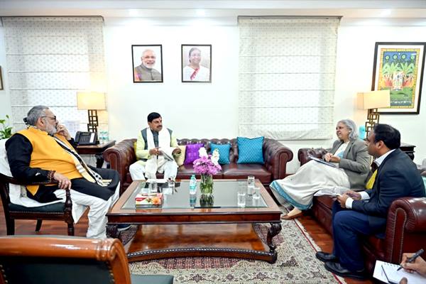 Chief Minister Dr. Mohan Yadav visited Union Minister for Textiles Shri Giriraj Singh at Udyog Bhavan in New Delhi on Wednesday. During the meeting, pending issues related to the Textiles Ministry at the central level were discussed, and Chief Minister Dr. Yadav urged that early decisions be taken on these matters.