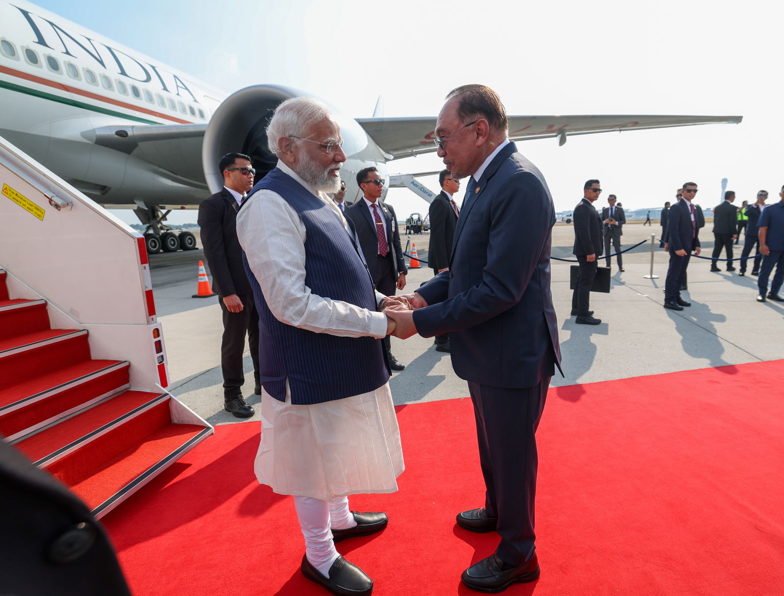 In a special gesture, Prime Minister on his arrival in Kuala Lumpur was warmly received by Prime Minister Dato’ Seri Anwar Ibrahim along with Malaysian Minister of Human Resources Dato’ Sri Ramanan Ramakrishnan and Deputy Foreign Minister of Malaysia, Dato’ Lukanisman bin Awang Sauni. This was followed by a colorful cultural welcome highlighting the shared heritage of both countries.