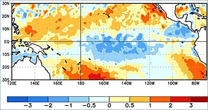 La Niña continued in January 2026, with below-average sea surface temperatures (SSTs) observed in the east-central equatorial Pacific Ocean.