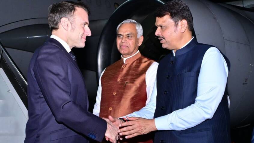 Mumbai, Feb 2026 : French President Emmanuel Macron arrived in India on Tuesday on a three-day official visit aimed at further deepening the long-standing strategic partnership between India and France. He was accorded a warm welcome at the Mumbai airport by Maharashtra Chief Minister Devendra Fadnavis and the Governor of Maharashtra and Gujarat, Acharya Devvrat. The visit underscores the growing importance both nations attach to their bilateral ties, particularly in areas such as defence, technology, innovation, and global cooperation.