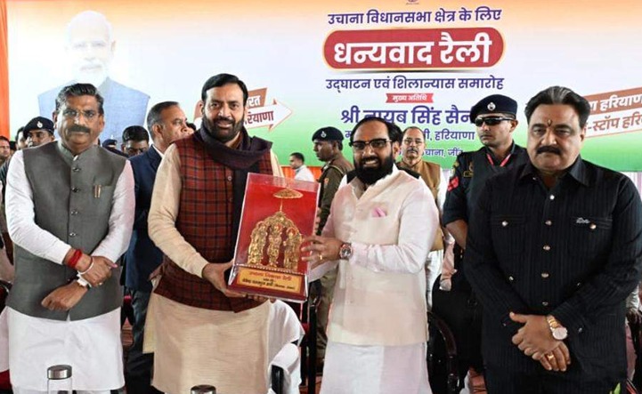 Chandigarh, February 2026 – Haryana Chief Minister Sh. Nayab Singh Saini inaugurated and laid the foundation stones of five development projects worth ₹103.31 crore during the Uchana Dhanyavad Rally held in Uchana, Jind district today. These included three inauguration projects worth ₹28.54 crore and two foundation stone projects worth ₹74.77 crore.