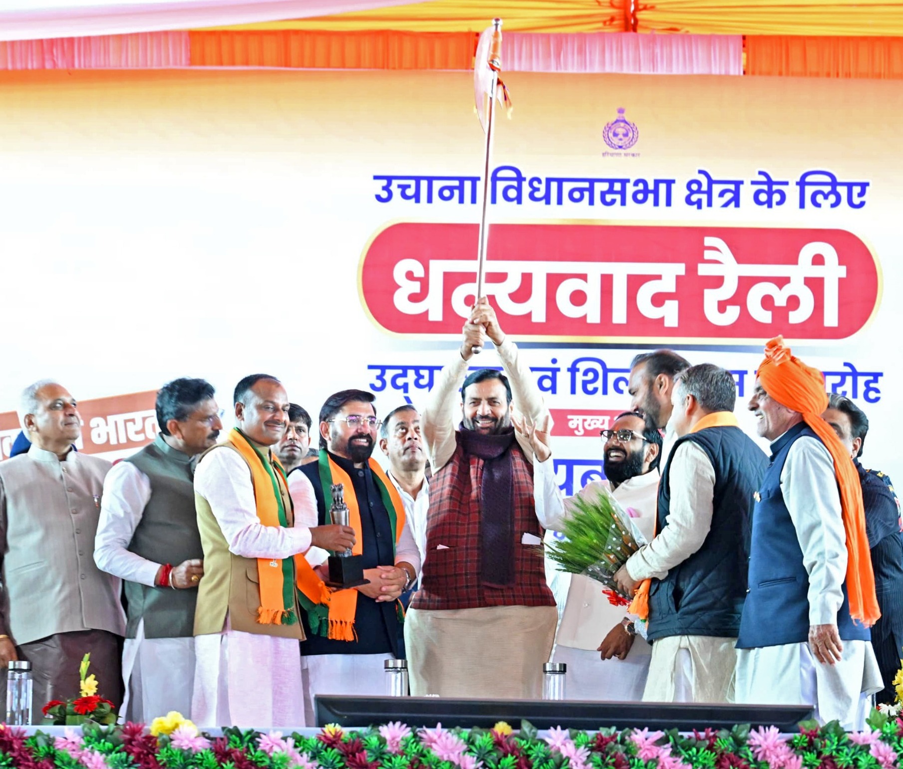 CM Nayab Singh Saini Addresses Dhanyavad Rally in Uchana, Launches Development Projects Worth ₹103.31 Crore