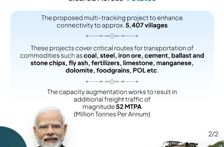 As rail transport is an environmentally friendly and energy-efficient mode, the projects will contribute positively to India’s climate goals. They are expected to save nearly 60 million litres of oil imports annually and reduce carbon emissions by about 300 million kilograms—an environmental impact equivalent to planting around 10 million trees.