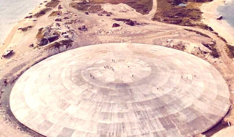 Marshall Islands; February 2026: From the outside, it looks almost too unassuming: a perfect concrete disk, 377 feet (115 metres) wide, rising from the white sand. Locals from the Marshall Islands call it “The Tomb”. In fact, it’s a sarcophagus.
