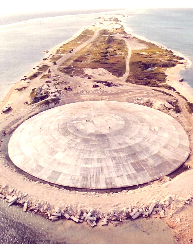 The RMI argues the compact is invalid because the US withheld critical information during negotiations — namely, the dome’s flawed design and the true extent of the remaining contamination. This includes the stunning fact, revealed decades later, that the Tomb holds only one percent of the total plutonium dumped on the atoll. The other 99 percent remains where it settled: in the sediments of the Enewetak lagoon.