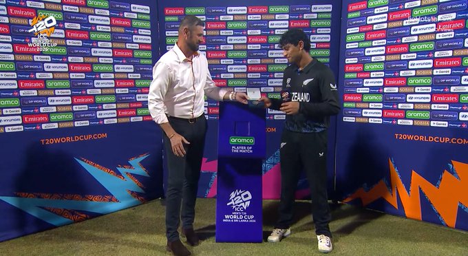 Ravindra emerged as the standout figure of the night, weaving a superb web with his crafty left-arm spin to claim career-best T20I figures of 4 for 27. His spell dismantled Sri Lanka’s chase and underlined New Zealand’s tactical superiority on a dry surface that increasingly favoured spin as the evening progressed.